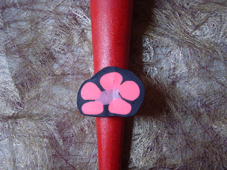 anel ajustável com peça em fimo rosa, verde e amarelo